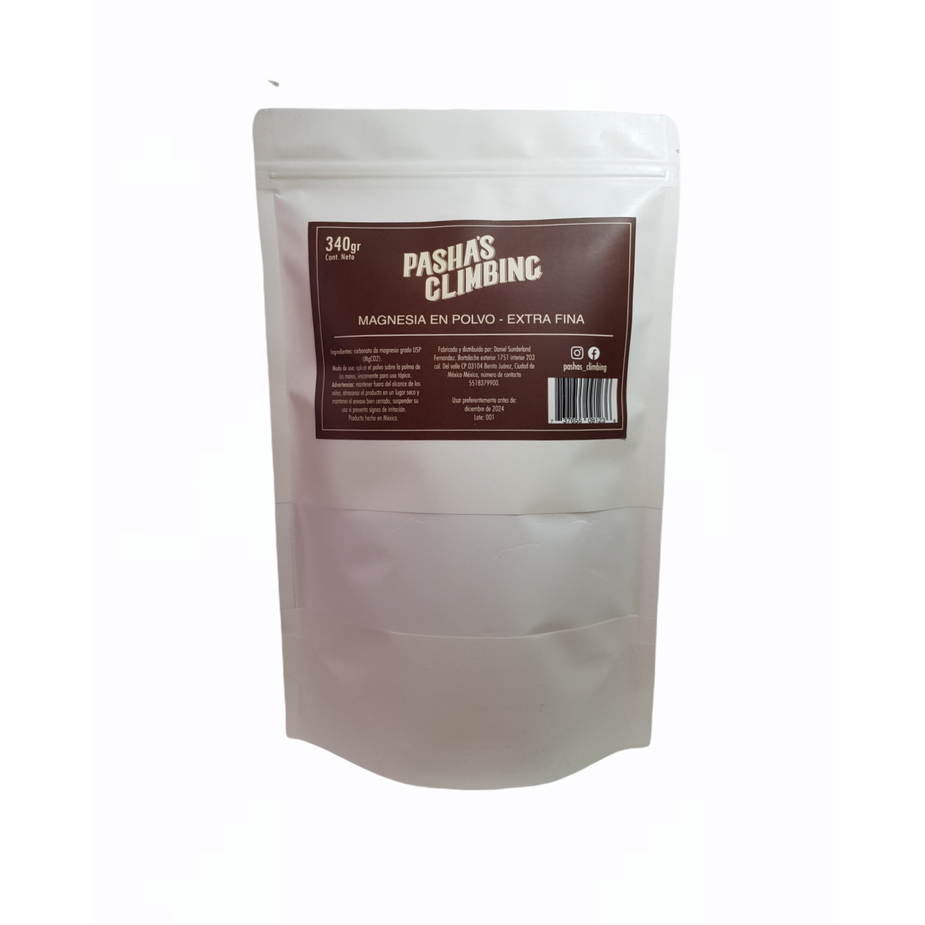 Bolsa con 340g de magnesia en polvo extra fino.